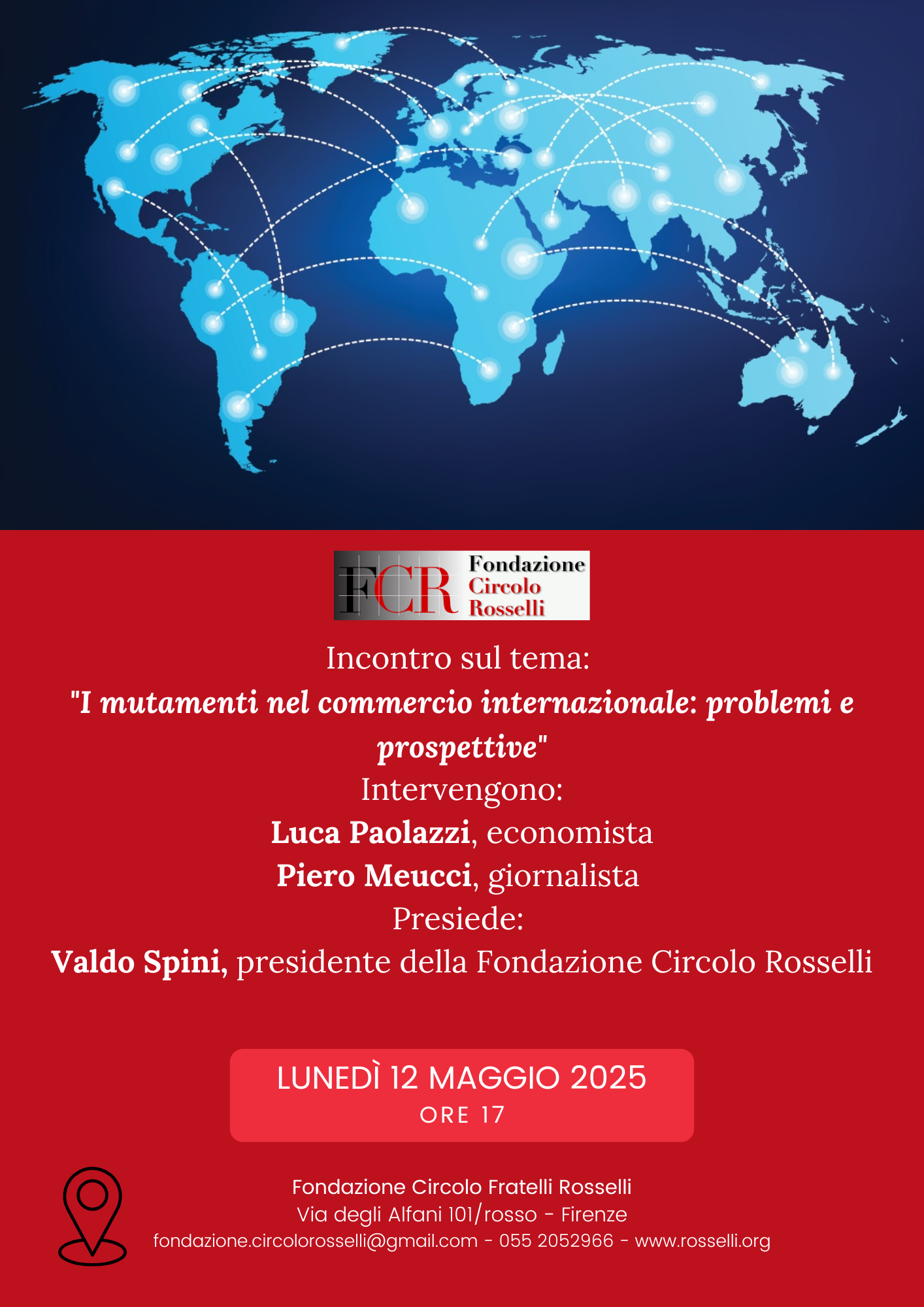 Notizie dagli istitutiFondazione Circolo Fratelli Rosselli12 maggio 2025 | Spazio QCR | “I mutamenti nel commercio internazionale: problemi e prospettive”
