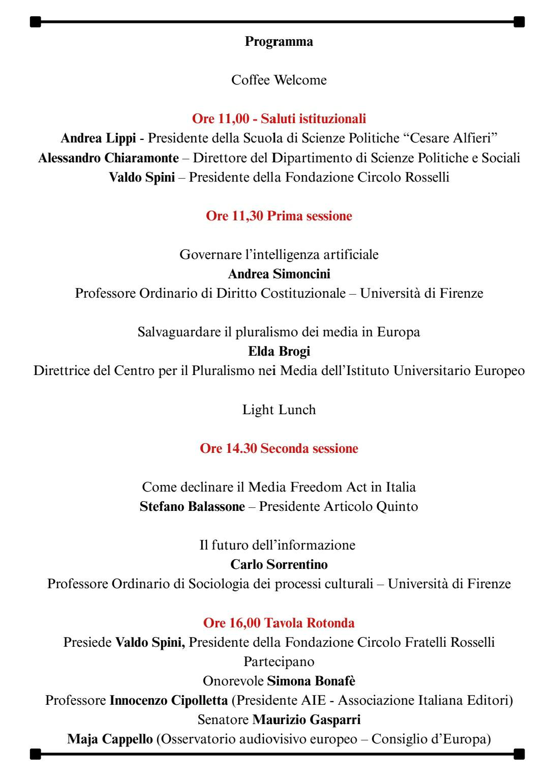 - Andrea Lippi – Presidente della Scuola di Scienze Politiche “Cesare Alfieri”