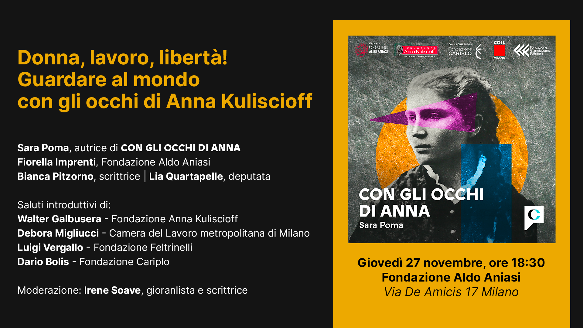 “Donna, lavoro, libertà! – Guardare al mondo con gli occhi di Anna Kuliscioff” 27 novembre