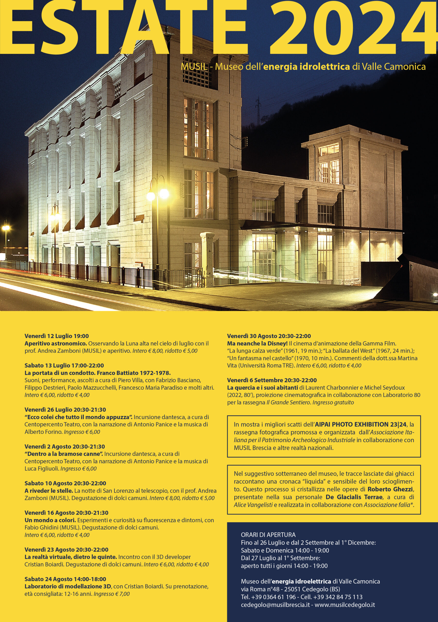 Proiezioni, eventi e divulgazione scientifica nell’Estate 2024 al Museo dell’energia idroelettrica di Cedegolo. Tante occasioni per trascorrere del tempo al museo!