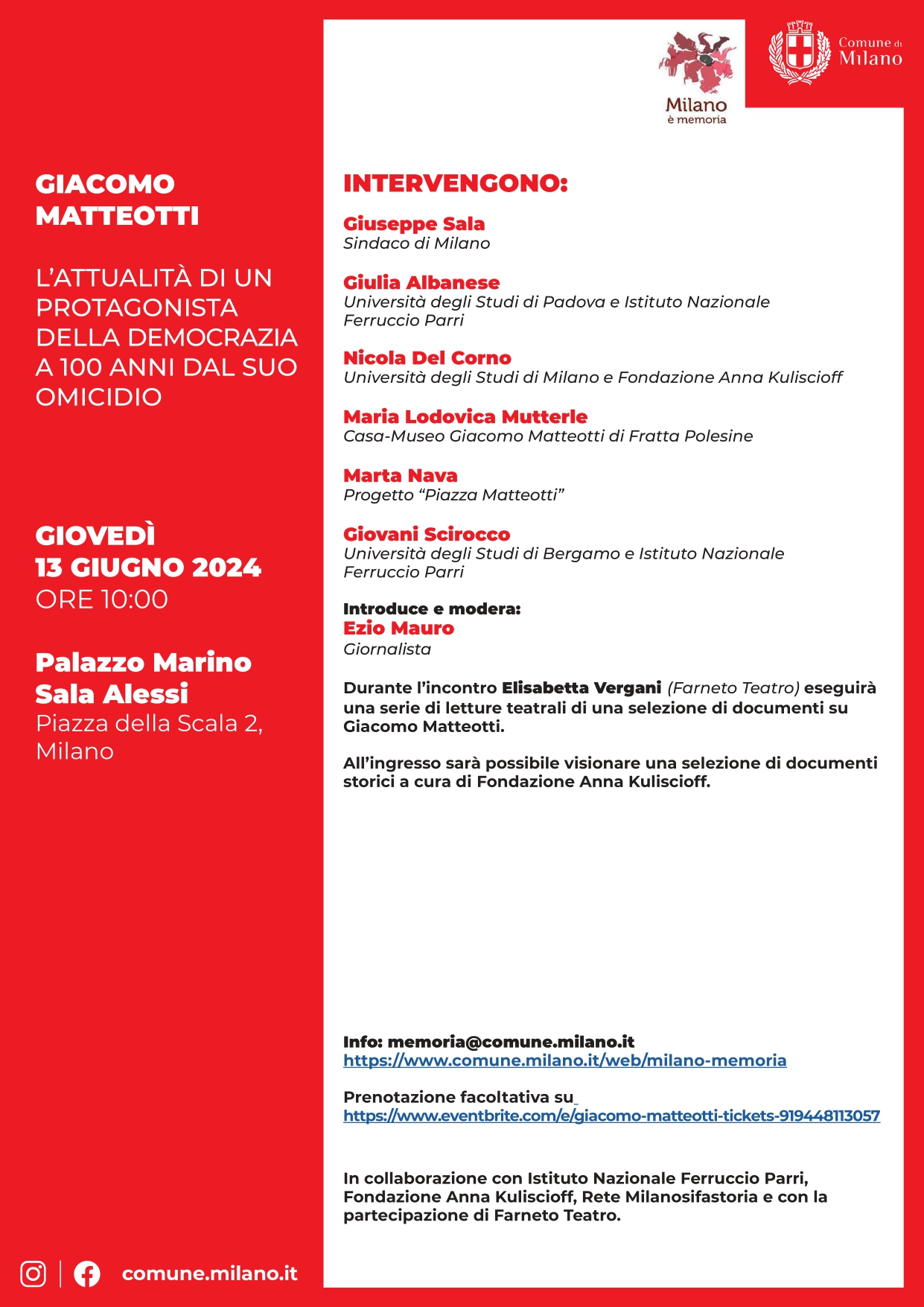 Notizie dagli istitutiFondazione Anna KuliscioffGiacomo Matteotti. Milano, Palazzo Marino – 13 giugno