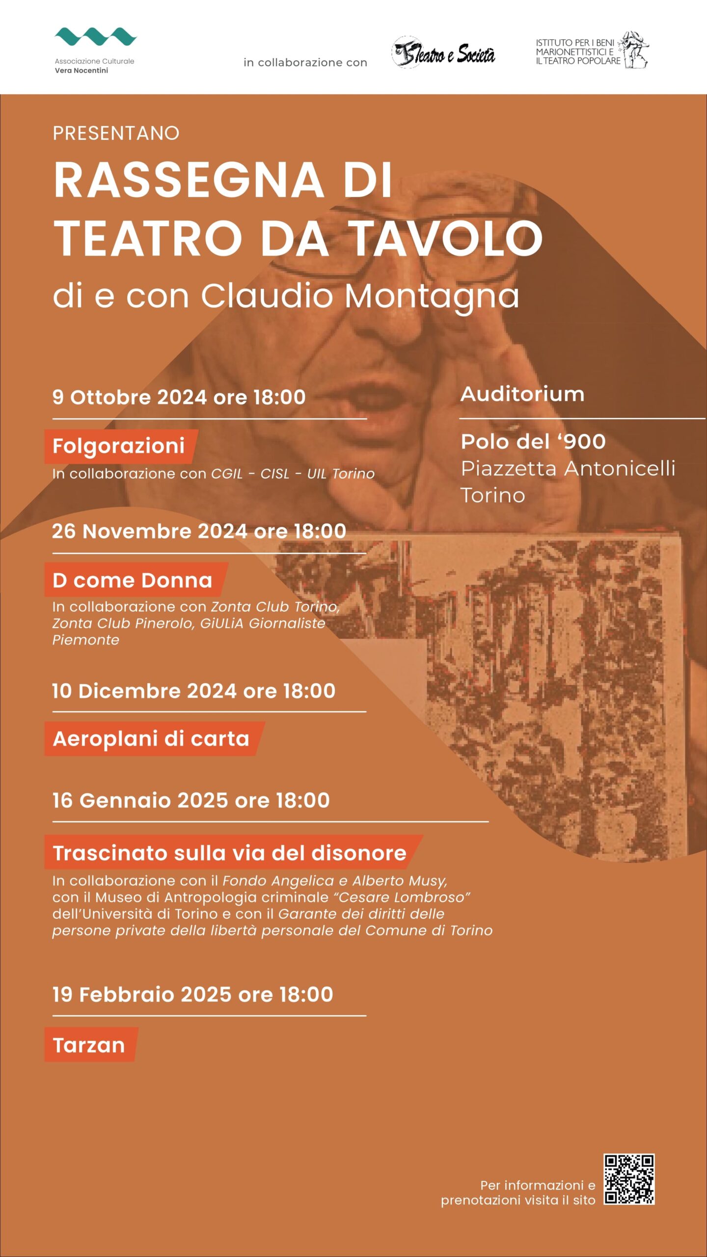 In collaborazione con Teatro e Società e con l’Istituto per i beni marionettistici e il teatro popolare, l’Associazione culturale Vera Nocentini organizza al Polo del ‘900 di Torino la RASSEGNA DI TEATRO DA TAVOLO di e con Claudio Montagna.